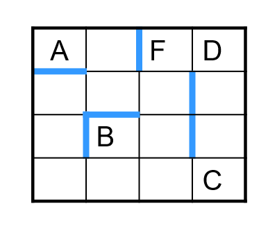 Последовательность дижения: Вниз (2) - Вправо (3) - Вверх (1) - Влево (4). В 4-х случаях робот врезается в стену, только из клетки B он может пройти последовательность движений и вернуться в клетку В.