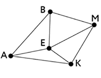 На рисунке показаны дорожки, которые соединяют мастерские фиксиков А, В, Е, К и М. Сколькими способами можно попасть из мастерской А в мастерскую М, не проходя через одну и ту же мастерскую дважды?
