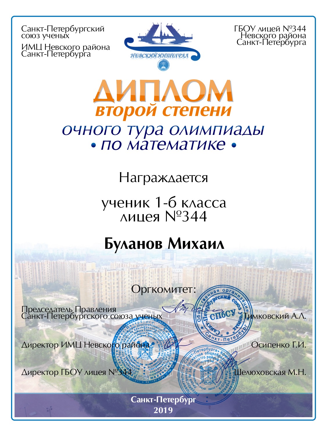 Буланов Михаил 344 1-б 22 Диплом 2 степени