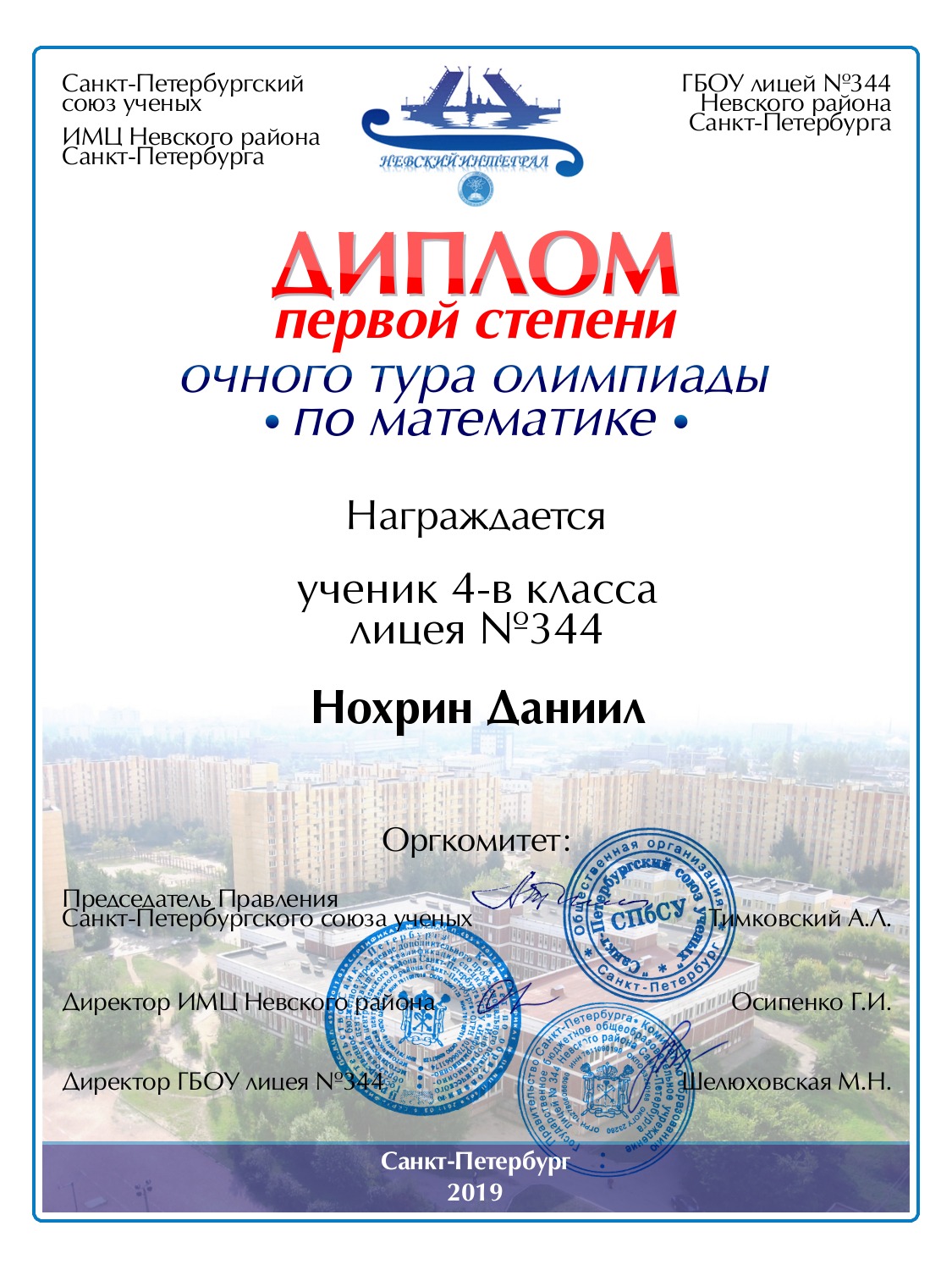 Нохрин Даниил 344 4-в 40 Диплом 1 степени