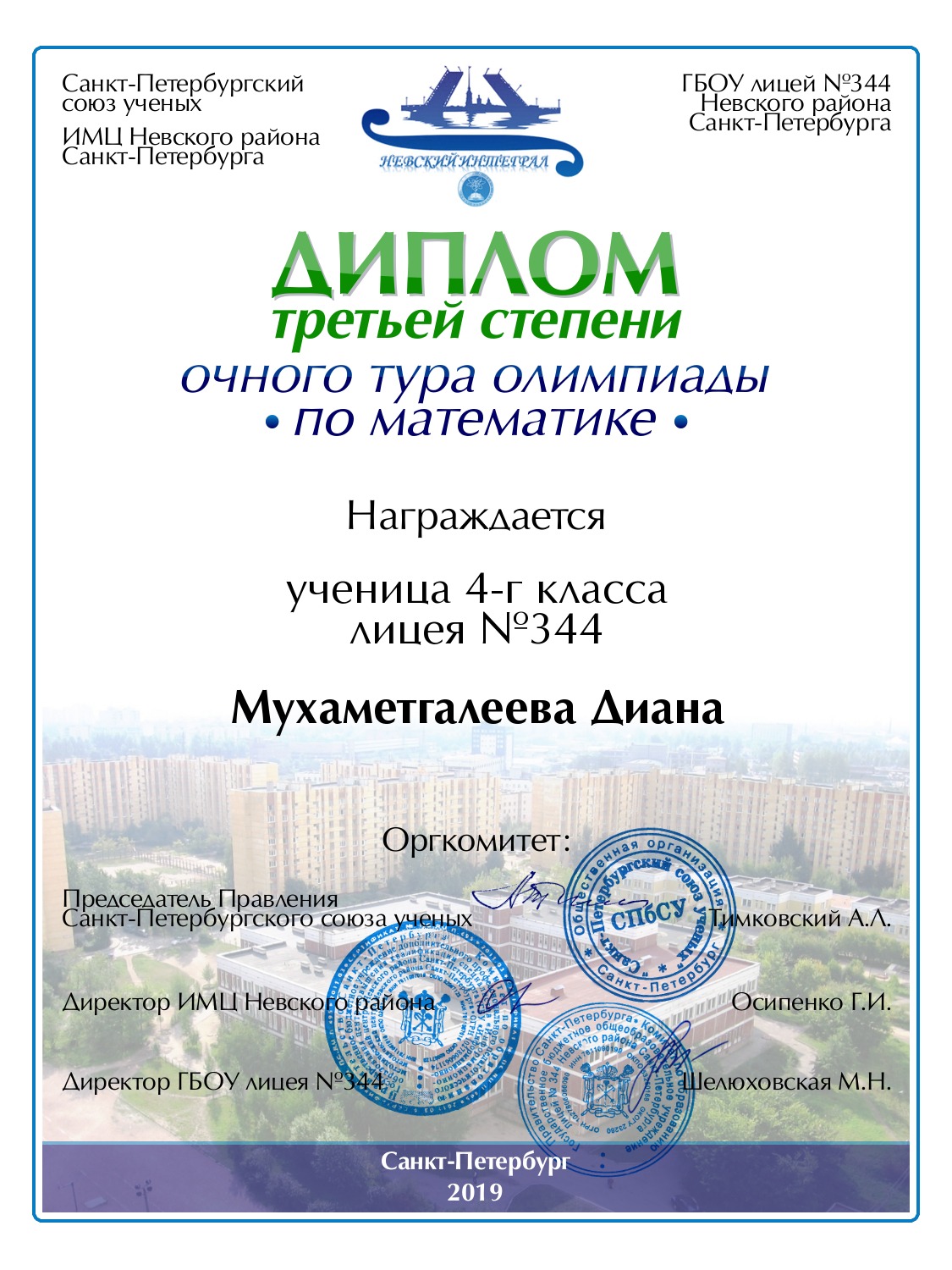 Мухаметгалеева Диана 344 4-г 34 Диплом 3 степени