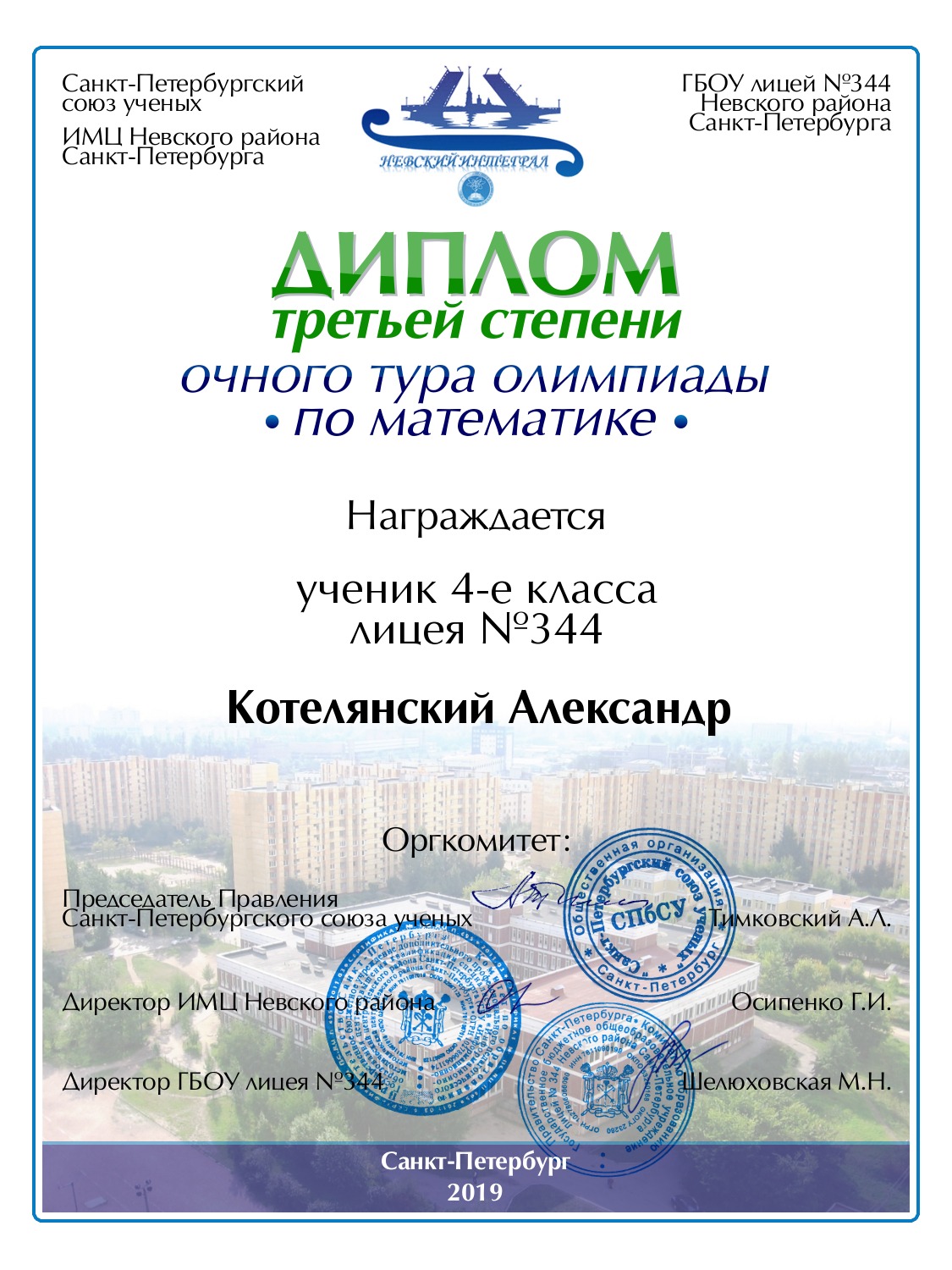 Котелянский Александр 344 4-е 33 Диплом 3 степени