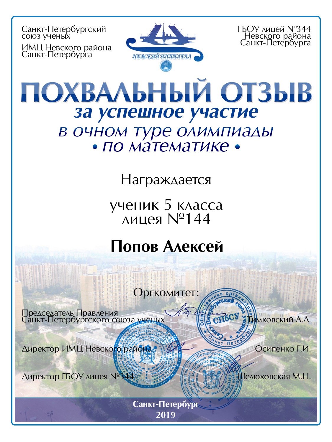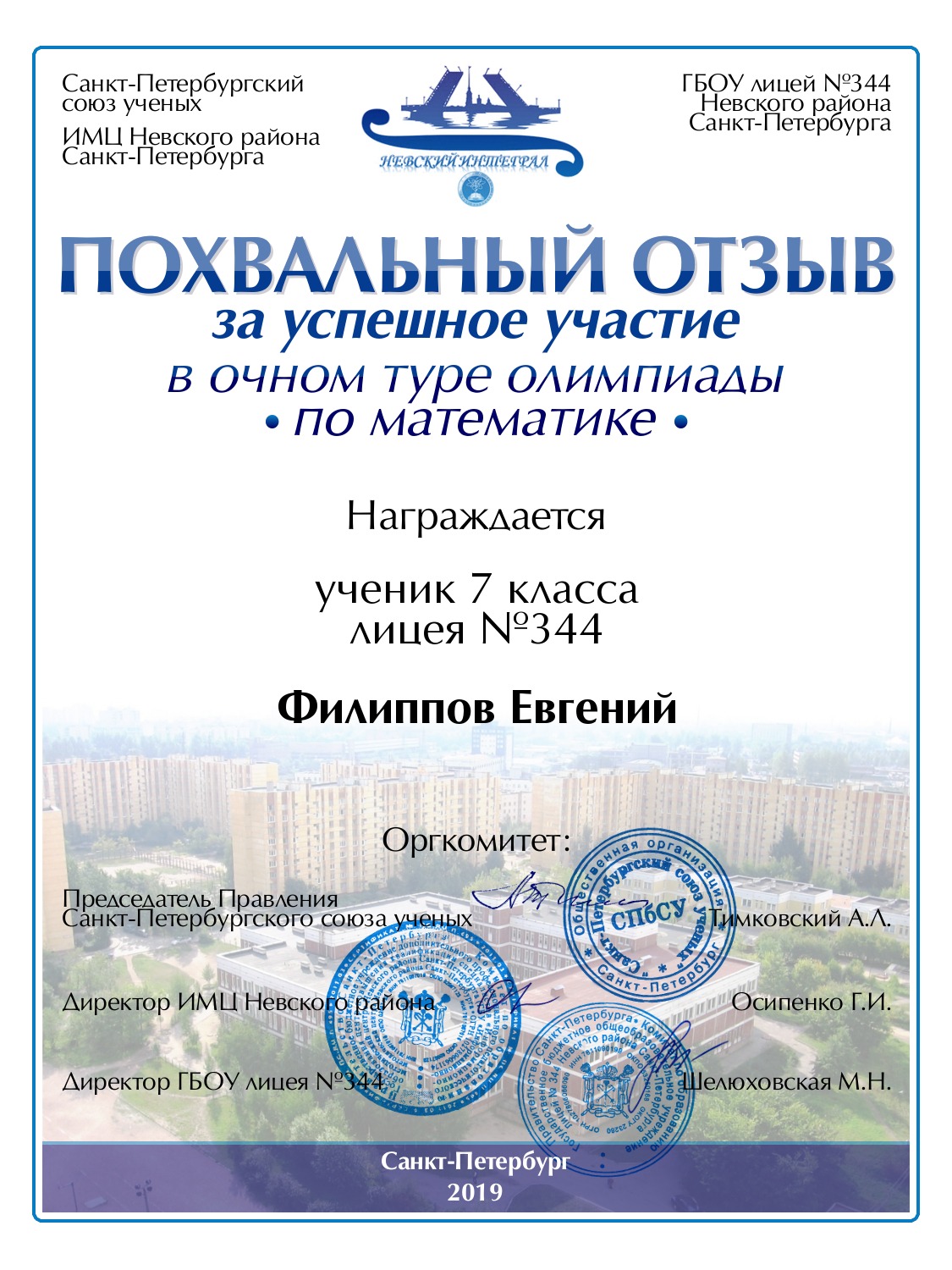 Моисеев Иван 344 1-б 13 Похвальный отзыв