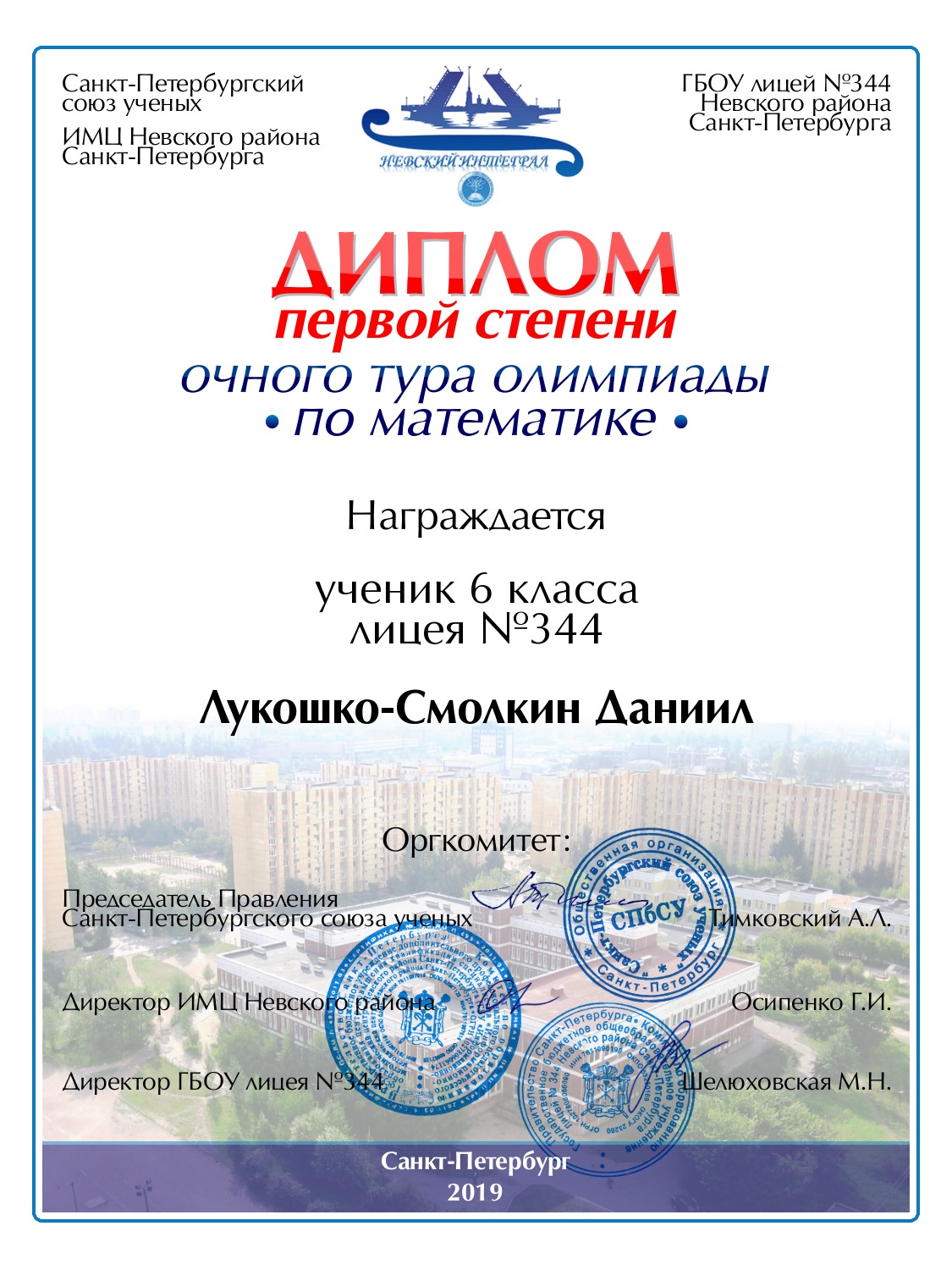 Лукошко-Смолкин Даниил 344 6 17 Диплом 1 степени