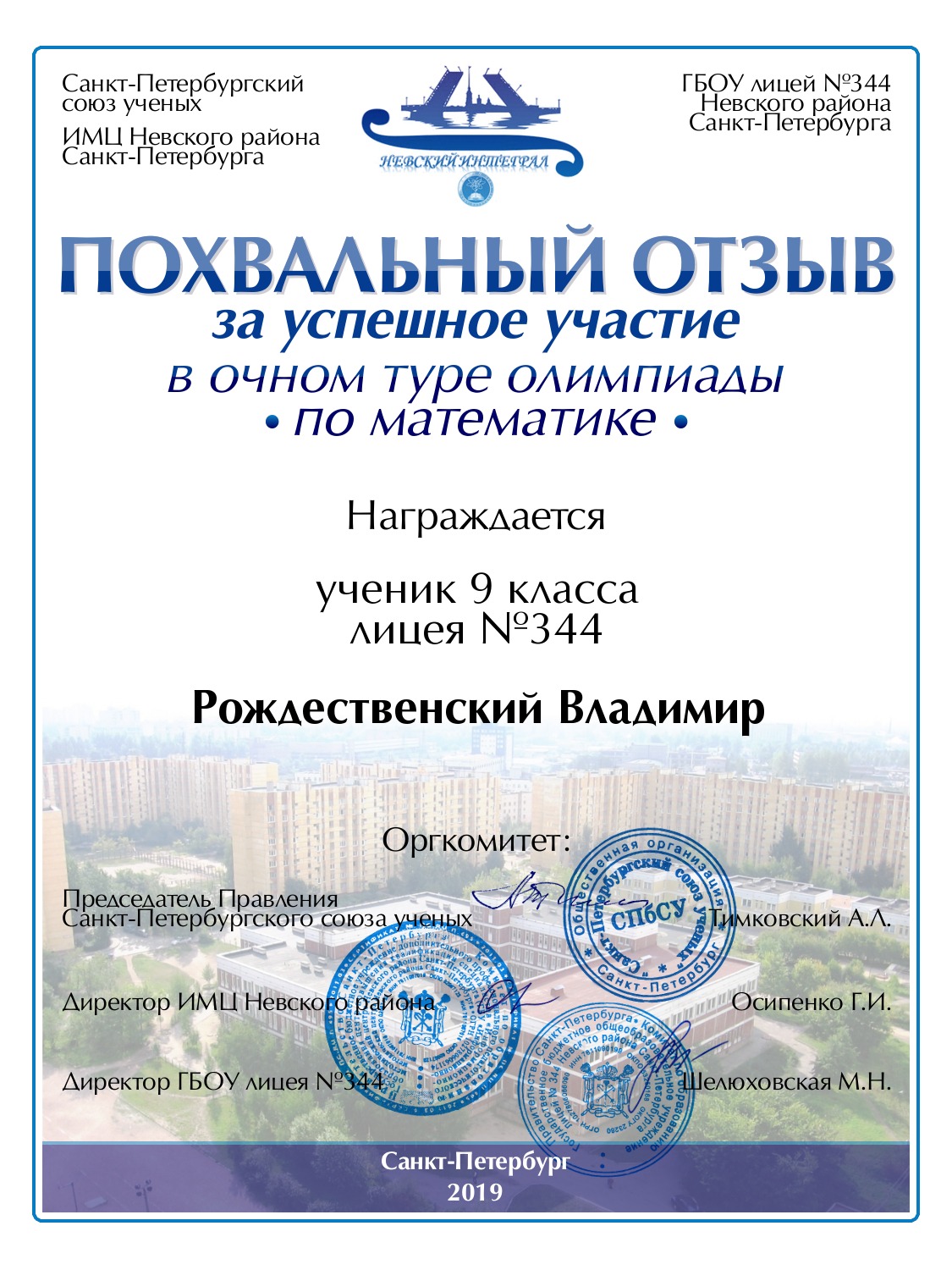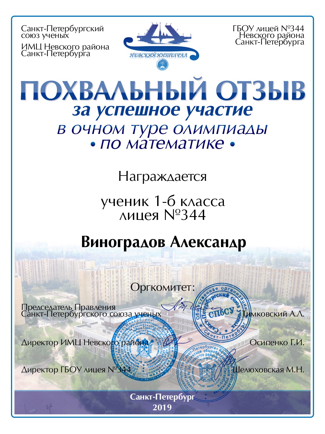 Виноградов Александр 344 1-б 13 Похвальный отзыв