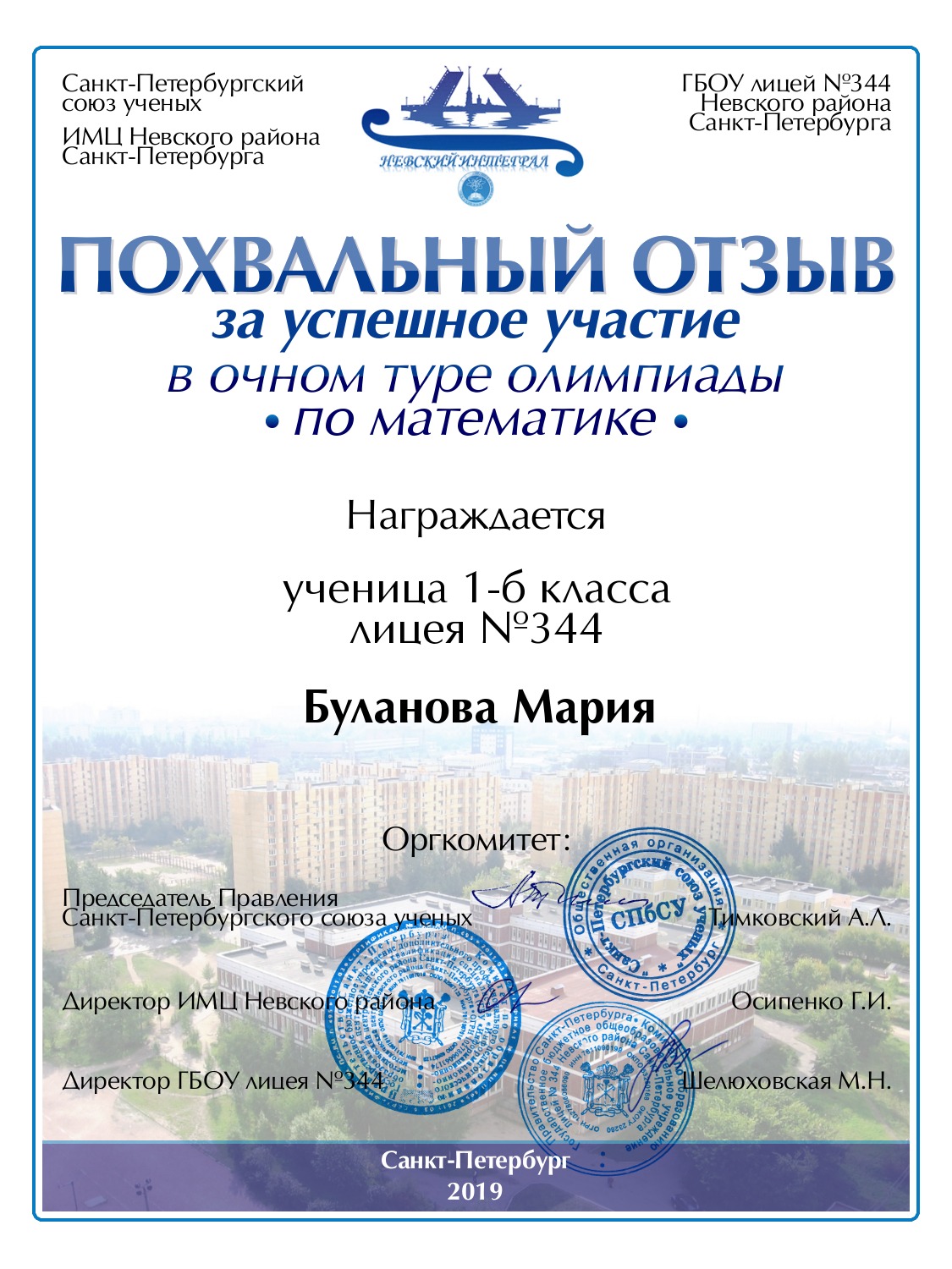 Буланова Мария 344 1-б 13 Похвальный отзыв