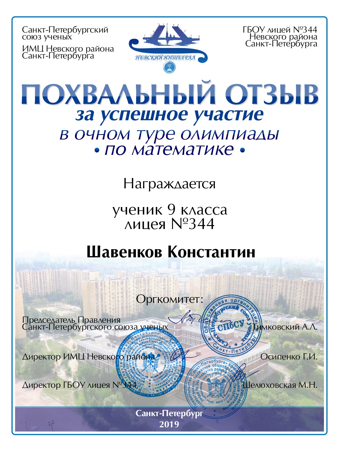 Шевченко Илья 344 6 18 Диплом 1 степени