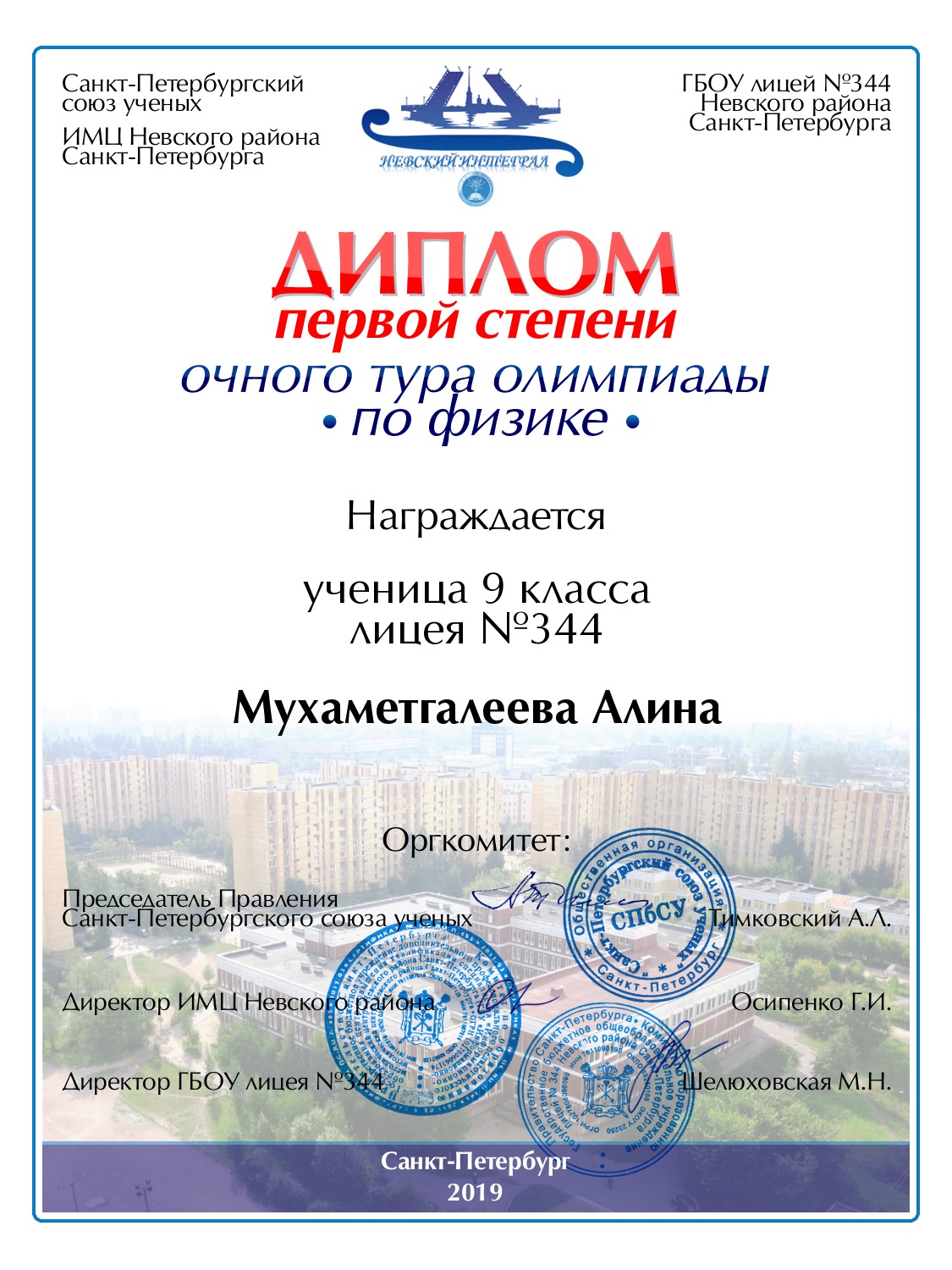 Мухаметгалеева Алина 344 9 16 Диплом 1 степени
