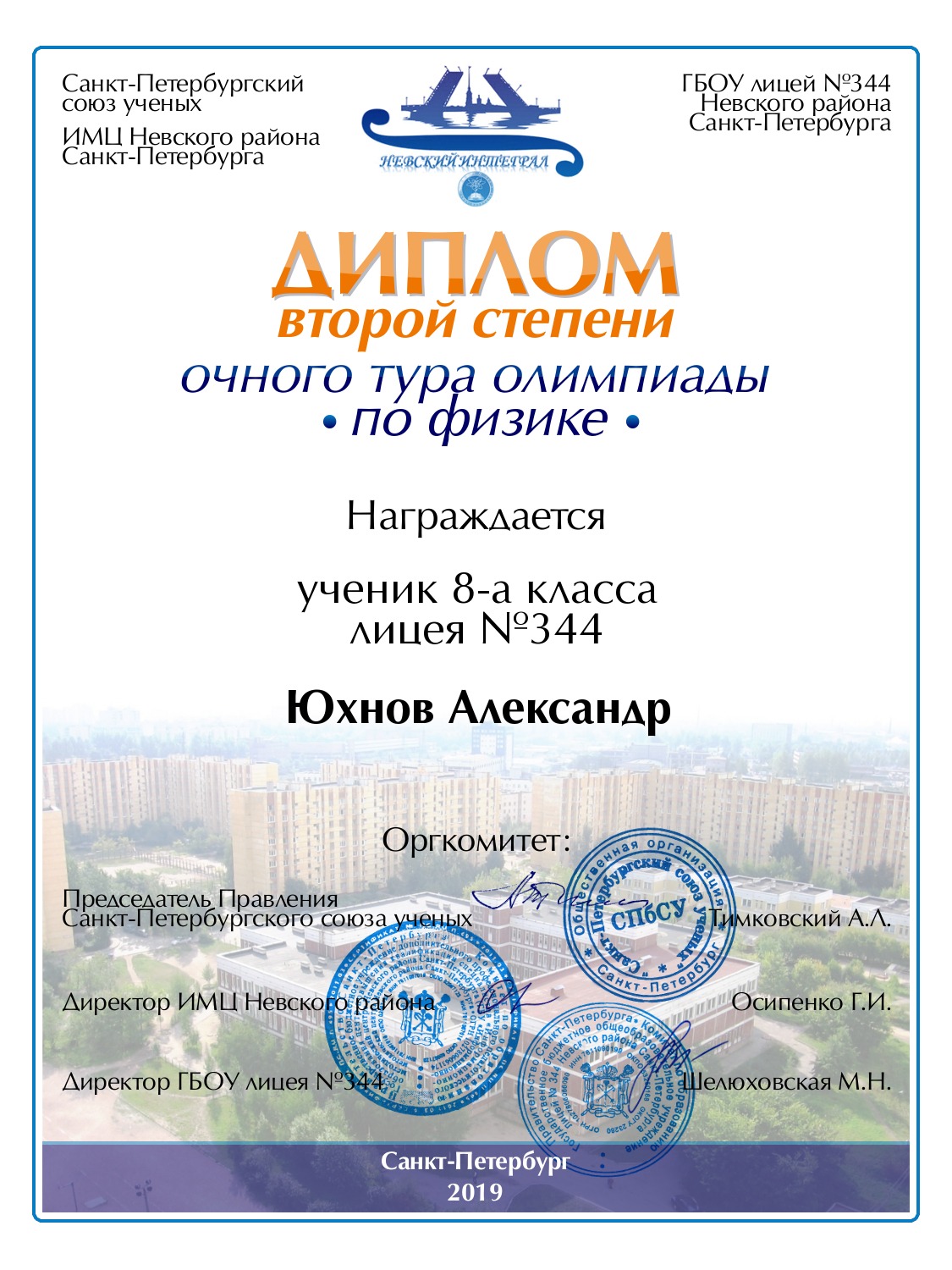 Юхнов Александр 344 8-а 12 Диплом 2 степени