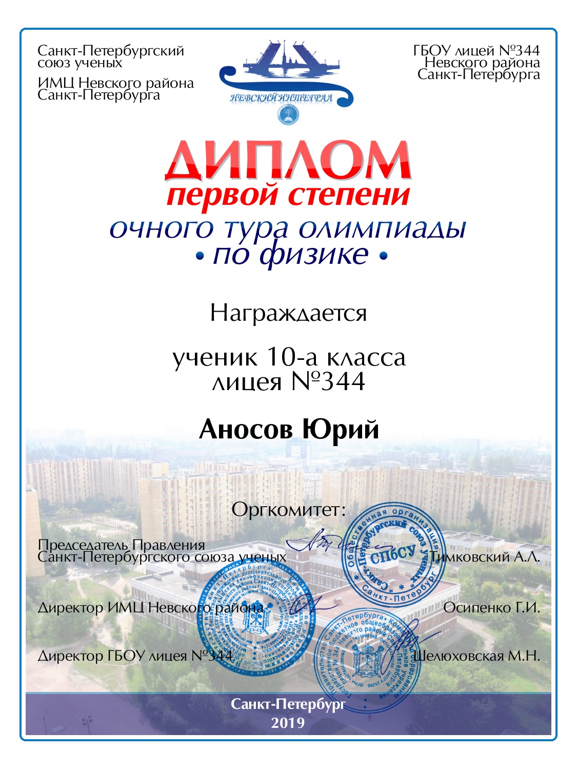 Аносов Юрий 344 10-а 15 Диплом 1 степени