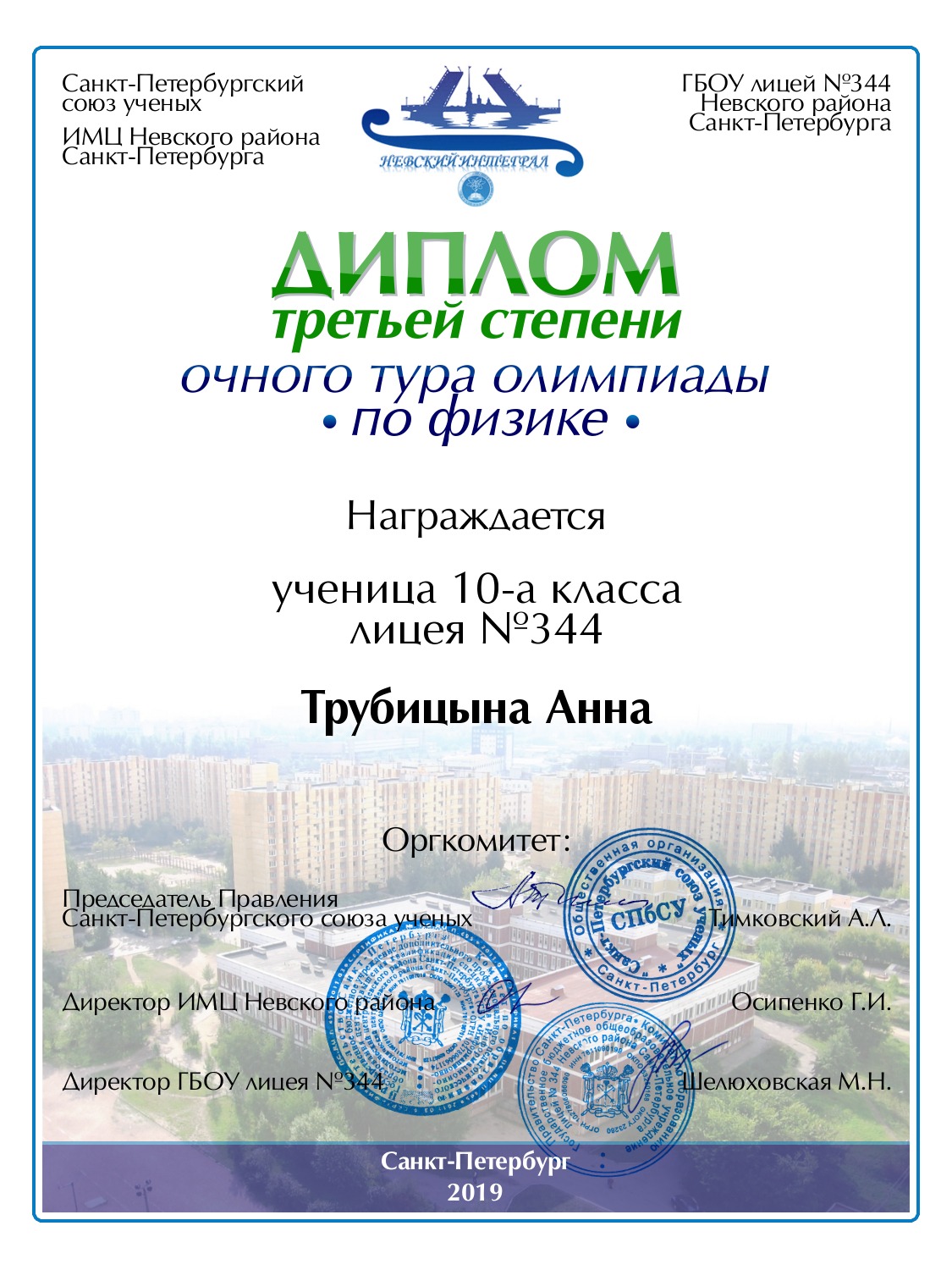 Трубицына Анна 344 10-а 13 Диплом 3 степени