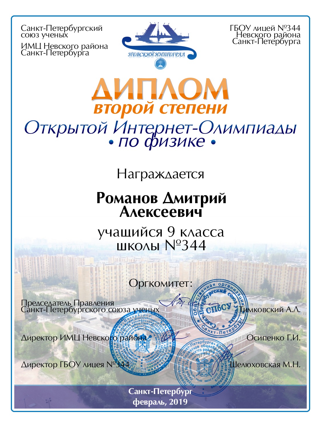 Романов Дмитрий Алексеевич Санкт-Петербург 344 9 80 Диплом 2 степени