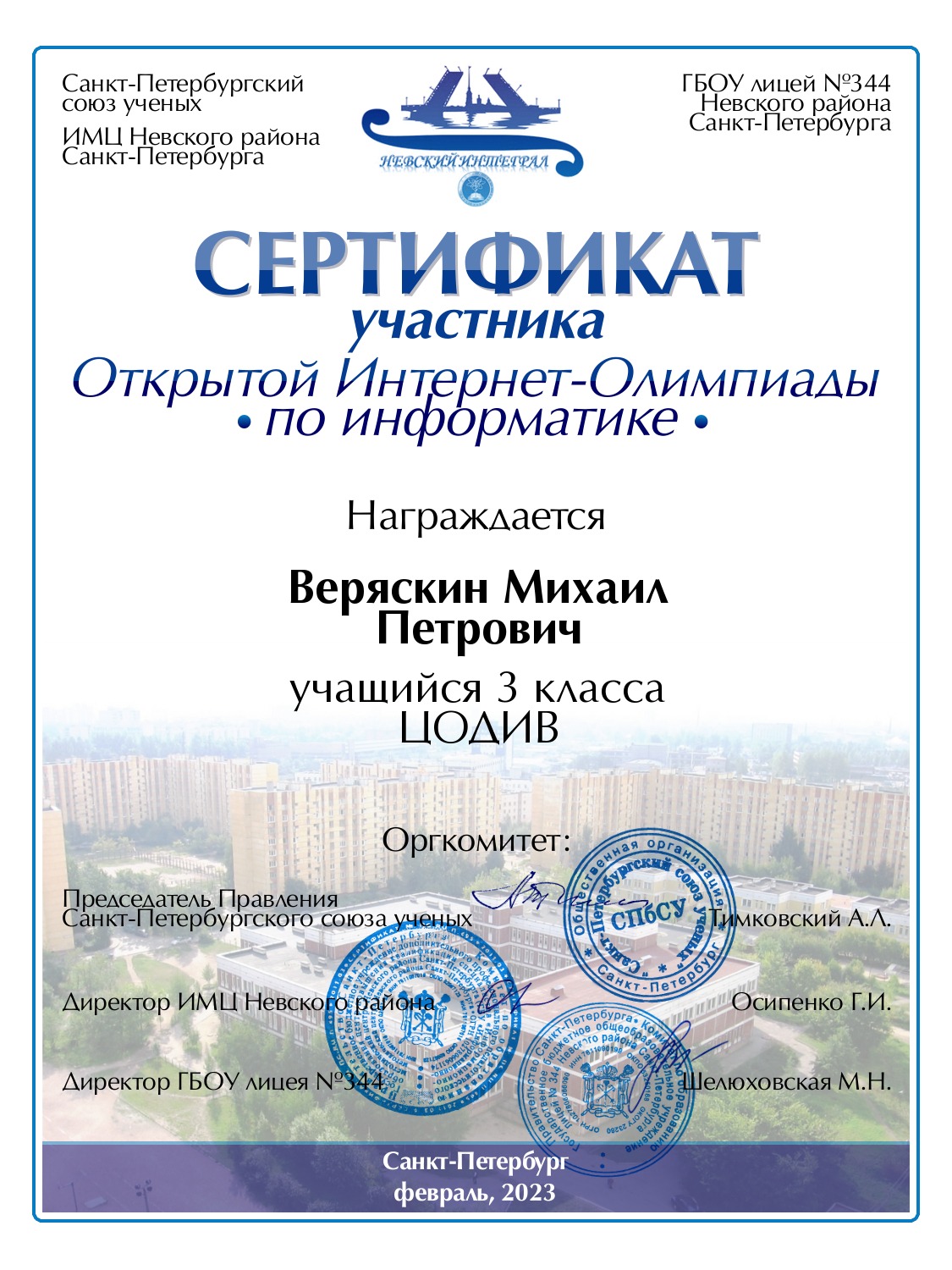 | Стельмах | Григорий | Максимович | Санкт-Петербург | 524 | 3 | 40 | Сертификат |