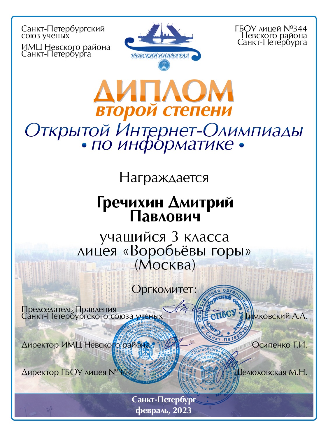 | Гришин | Андрей | Евгеньевич | Санкт-Петербург | 341 | 3 | 80 | Диплом 2 степени |